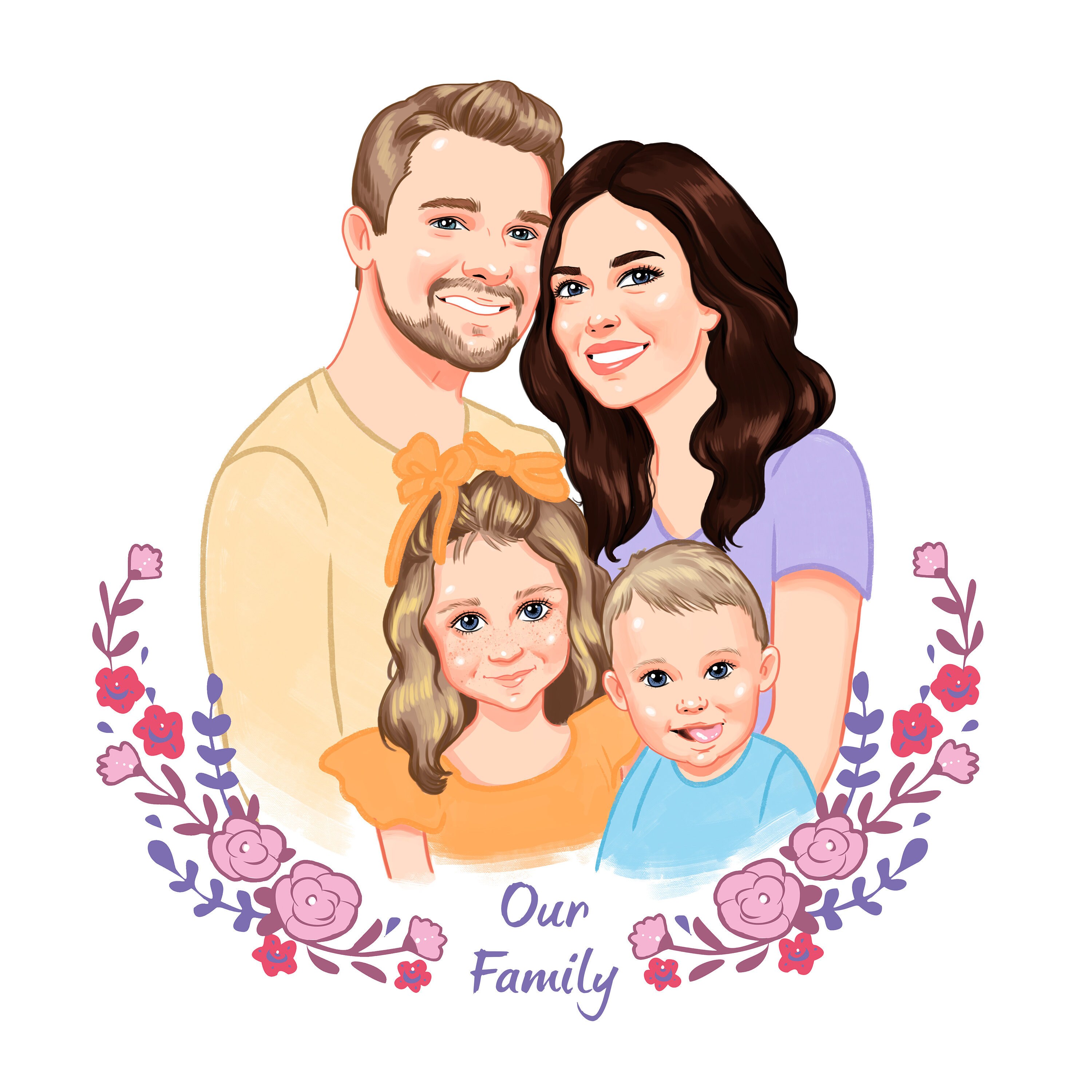 Our artists create your protrait. Family Custom Cartoon Portrait. Gift a custom cartoon family portrait customized for your beloved ones great for every occasion.